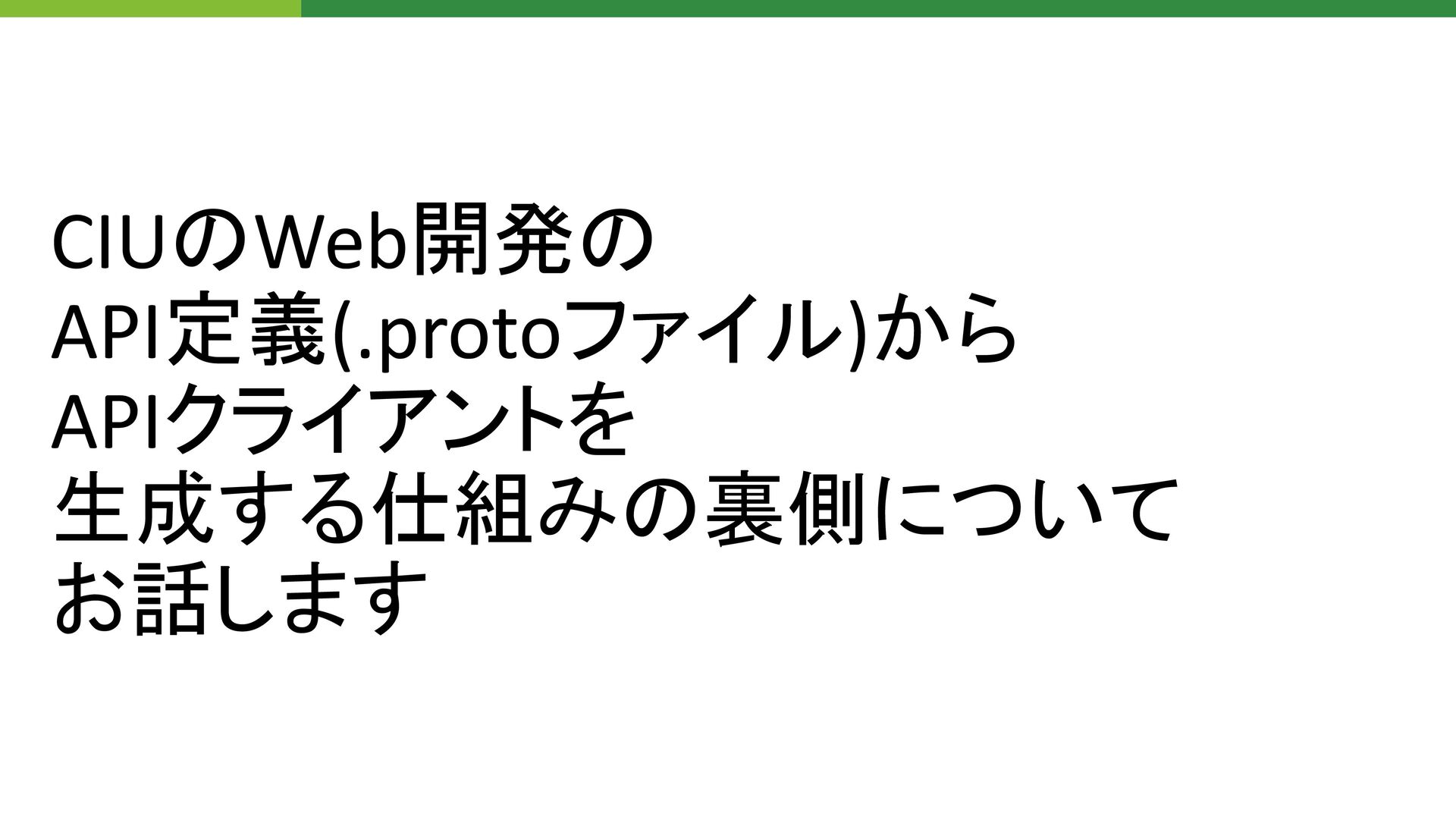 CIUのWeb開発の API定義(.protoファイル)から APIクライアントを 生成する仕組みの裏側について お話します