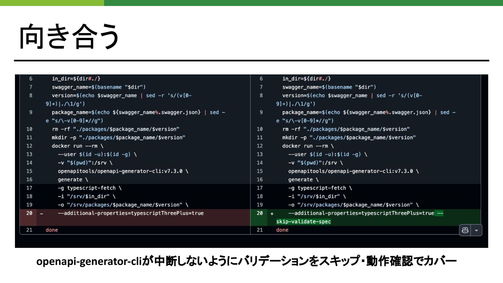 向き合う openapi-generator-cliが中断しないようにバリデーションをスキップ・動作確認でカバー