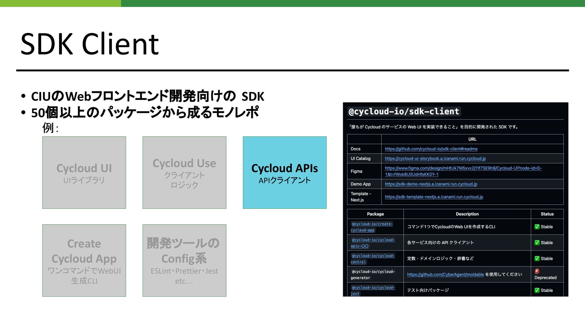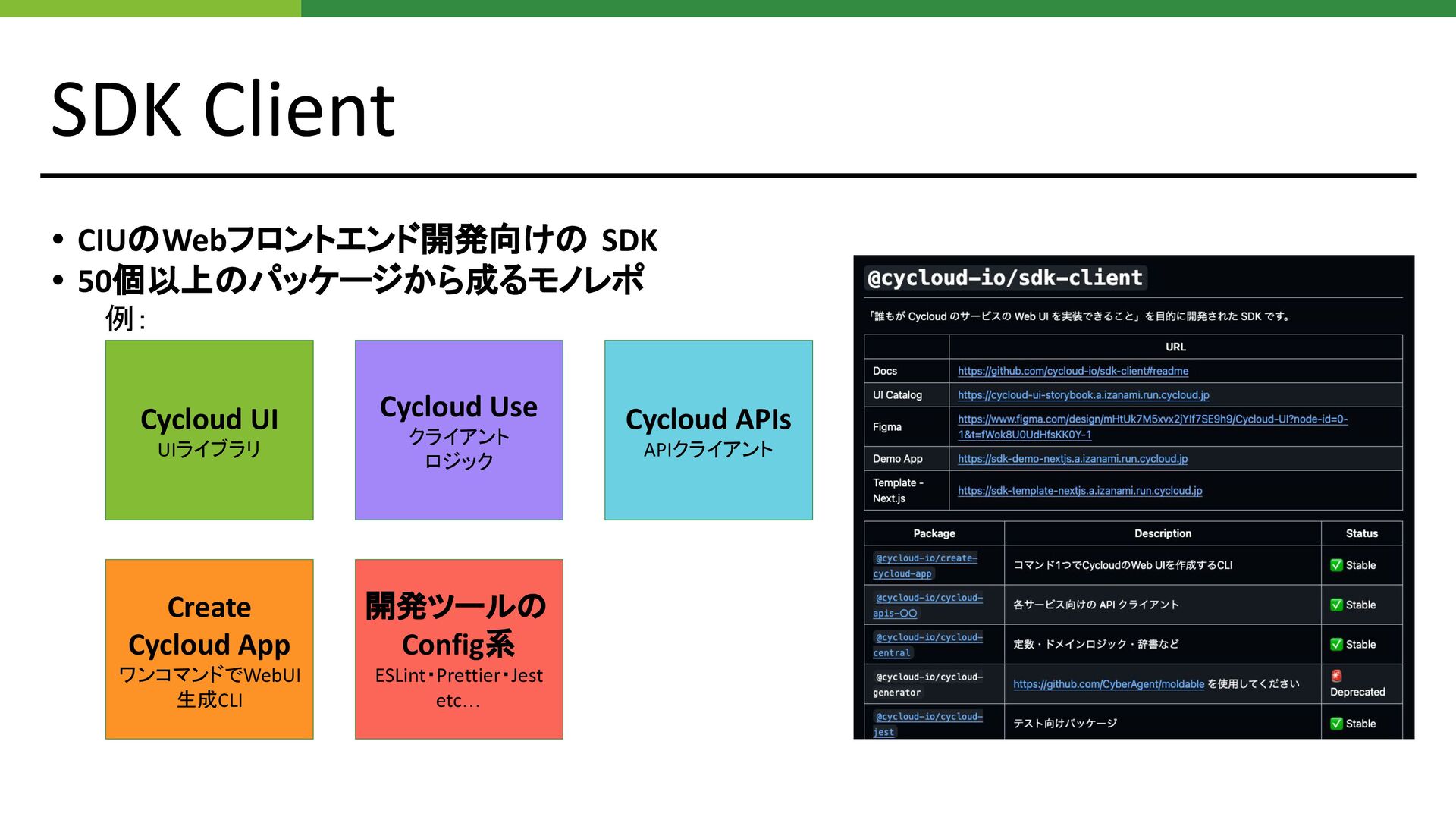 SDK Client • CIUのWebフロントエンド開発向けの SDK • 50個以上のパッケージから成るモノレポ 例: Cycloud UI