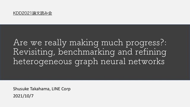 [KDD2021論文読み会] Are we really making much progress? Revisiting, benchmarking and refining heterogeneous graph neural networks