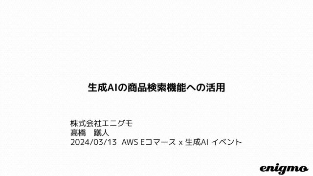 2024/03/13 AWS Eコマース x 生成AI イベントの登壇資料。 登壇報告:https://x.com/enigmo_tech/status/1776132049579262461