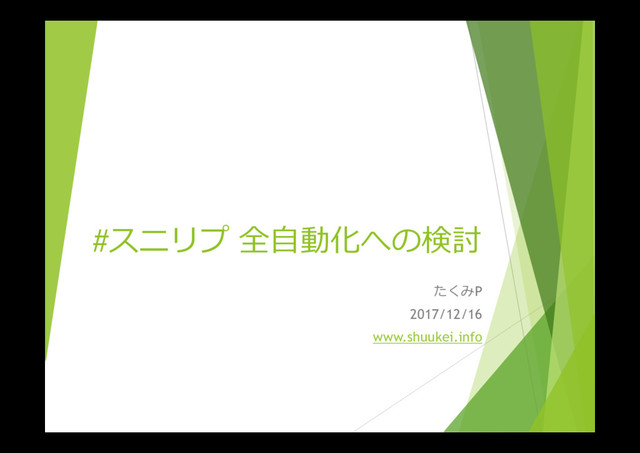 #スニリプ 全自動化への検討 たくみP 2017/12/16 www.shuukei.info