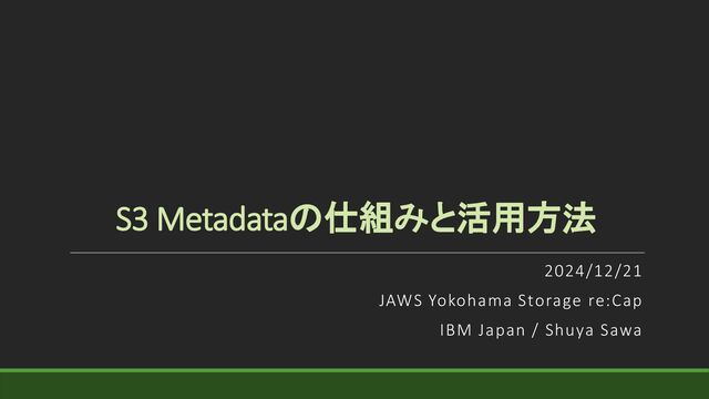 S3 Metadataの仕組みと活用方法 2024/12/21 JAWS Yokohama Storage re:Cap IBM Japan /