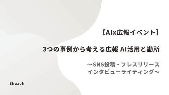 3つの事例から考える広報 AI活用と勘所 〜SNS投稿・プレスリリース インタビューライティング〜 ShuzoN 【AIx広報イベント】