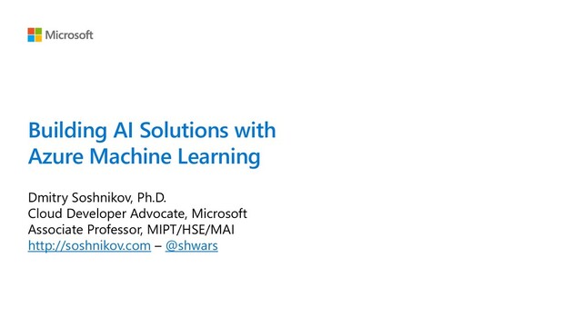 • The best way to start with Azure ML using VS Code • Using Azure ML for Hyperparameter Optimization • Training GAN to Produce Art • Training BERT Question Answering with DeepPavlov ❶ ❷ Try it out: http://github.com/CloudAdvocacy/AzureMLStarter