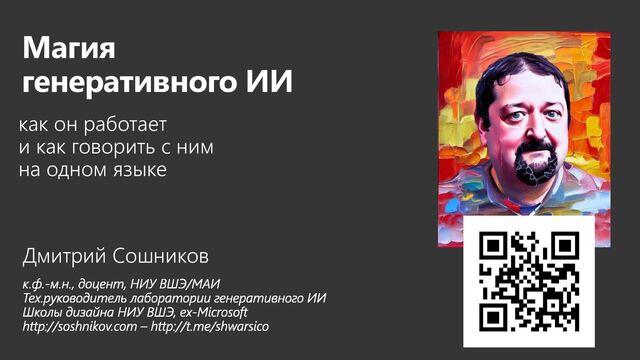 лаборатории генеративного ИИ Школы дизайна НИУ ВШЭ, ex-Microsoft http://soshnikov.com – http://t.me/shwarsico как он работает и как говорить с ним на одном языке
