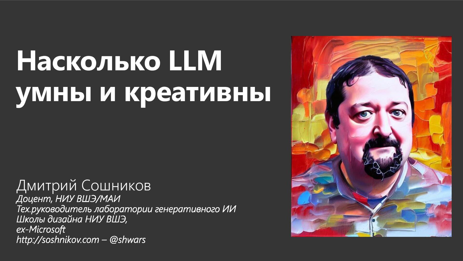 1. Насколько LLM умны и креативны Дмитрий Сошников Доцент, НИУ ВШЭ/МАИ