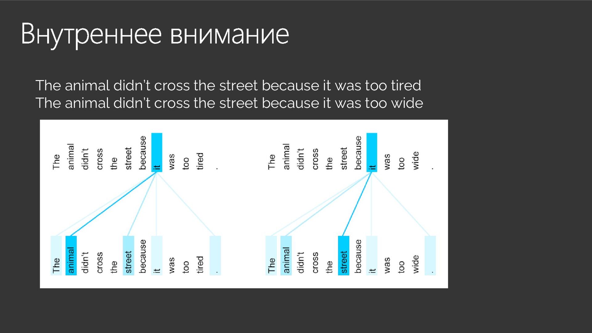 5. Внутреннее внимание The animal didn’t cross the street because it
