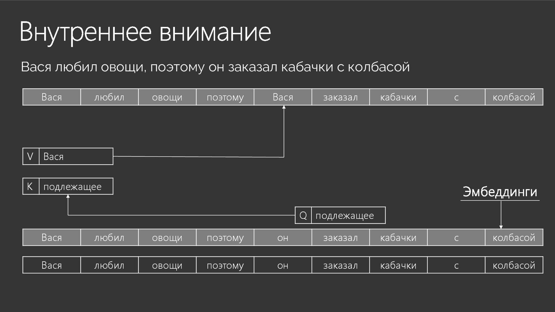 колбасой Вася любил овощи поэтому он заказал кабачки с колбасой Вася любил овощи поэтому он заказал кабачки с колбасой Вася любил овощи поэтому Вася заказал кабачки с колбасой K подлежащее V Вася Q подлежащее Эмбеддинги