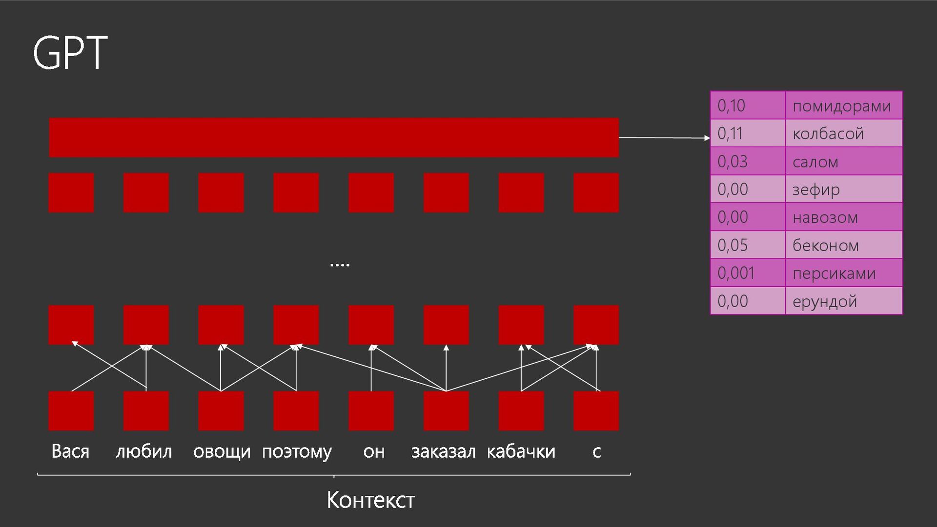 7. GPT Контекст …. 0,10 помидорами 0,11 колбасой 0,03 салом 0,00