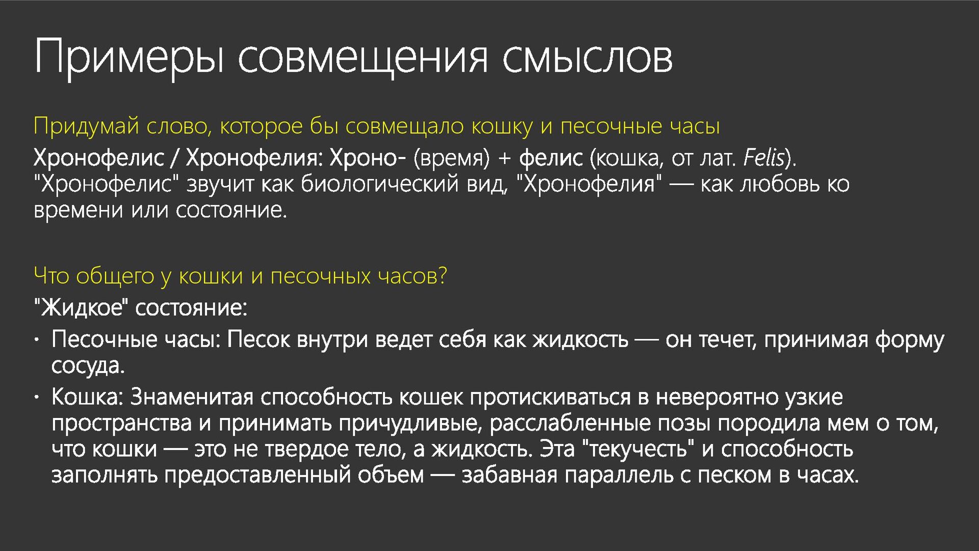 9. Примеры совмещения смыслов Придумай слово, которое бы совмещало кошку и