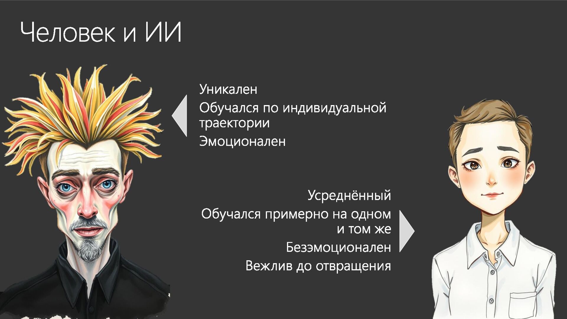 21. Человек и ИИ Уникален Обучался по индивидуальной траектории Эмоционален Усреднённый
