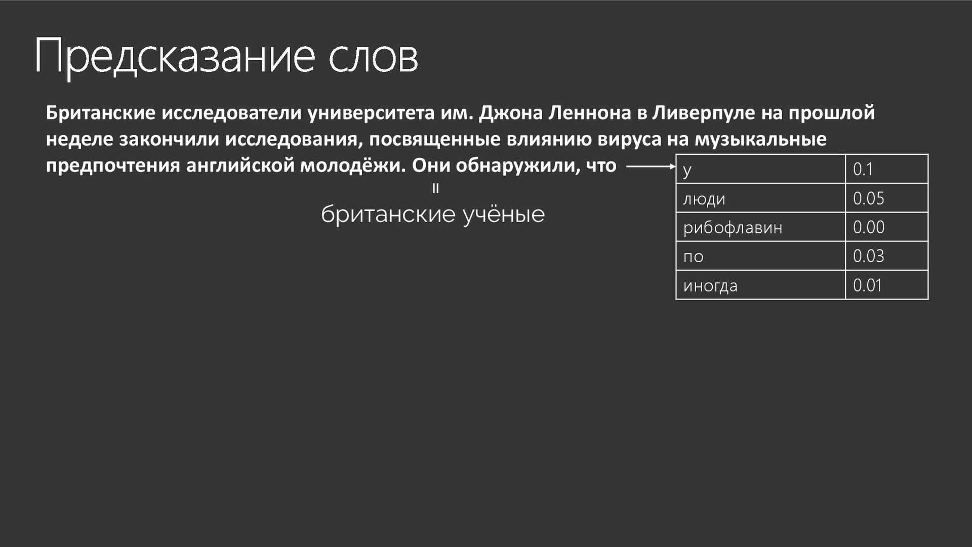 3. Предсказание слов Британские исследователи университета им. Джона Леннона в Ливерпуле