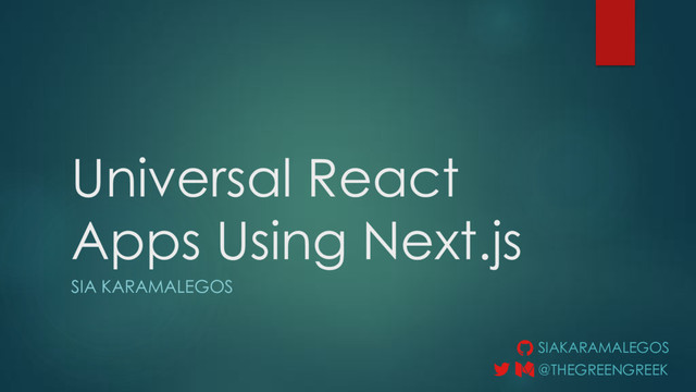 Every user’s hardware is different, and processing speed can hinder user experience on client-side rendered React applications. Server-side rendering and code-splitting can drastically improve user experience by minimizing the work that the client has to do. It’s easy to get lost in the lingo, so this presentation explores what it all means and how to easily build universal React apps using the Next.js framework. I walk through the concepts and use code examples to cement your understanding. You’ll get the most out of this if you’re comfortable with React and ES6 syntax.