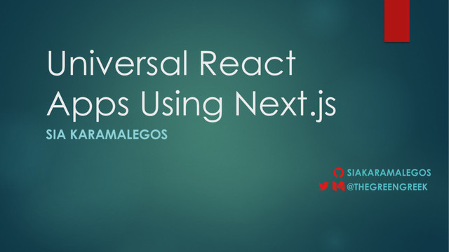 Every user’s hardware is different, and processing speed can hinder user experience on client-side rendered React applications. Server-side rendering and code-splitting can drastically improve user experience by minimizing the work that the client has to do. It’s easy to get lost in the lingo, so this presentation explores what it all means and how to easily build universal React apps using the Next.js framework. I walk through the concepts and use code examples to cement your understanding. You’ll get the most out of this if you’re comfortable with React and ES6 syntax.