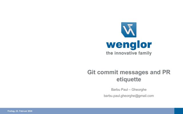 • Clean / clear messages (what & how) • Bigger feature – more commit messages, feature # from issue tracker • Small stuff – renames & so on, non-functional stuff – can have „symbolic messages“ • The history is the most important! • The reviewer of a PR should also inspect commit messages to be clean