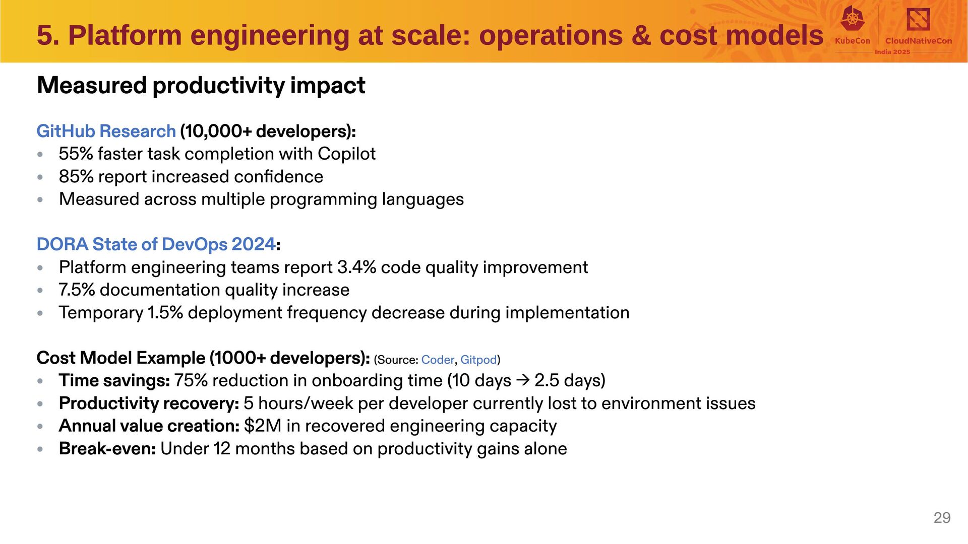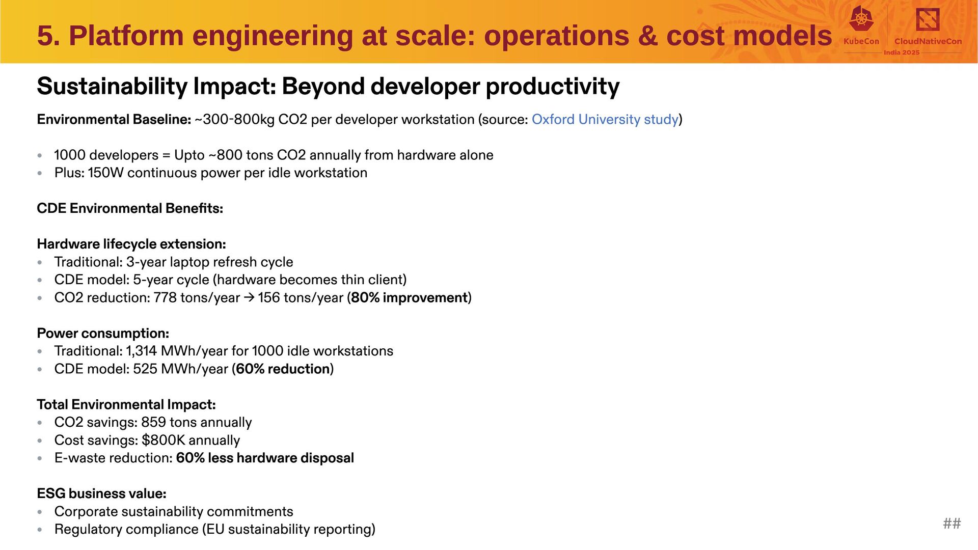 * Measuring impact—tracking developer velocity, infra costs, and sustainability improvements.