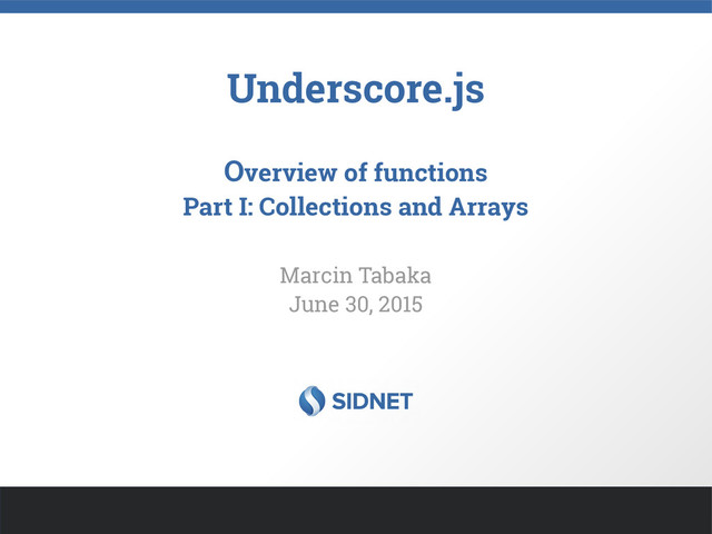 functions for common programming tasks • Made by Jeremy Ashkenas (also known for Backbone.js and CoffeeScript) • Similar to features provided by Prototype.js and the Ruby language • Opts for a functional programming design instead of extending object prototypes