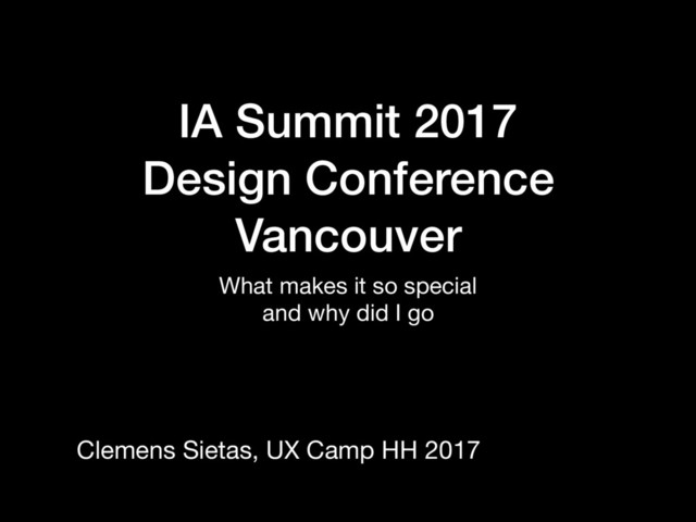 My session of UX Camp 2017. My talk was about my visit of the Information Architecture Summit Conference 2017 in March 2017.