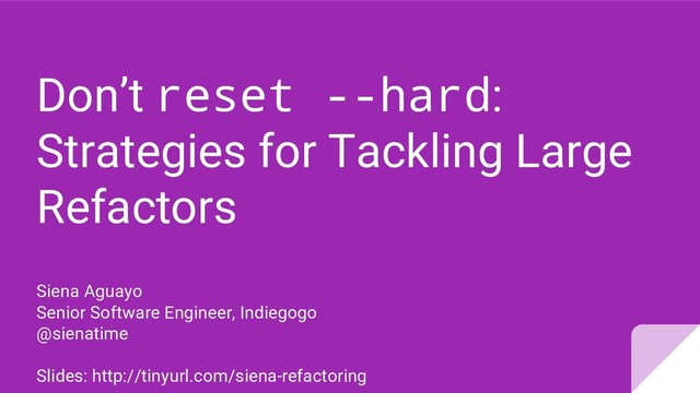 How many times have you started an ambitious refactor only to get lost and end up doing a git reset --hard? Android libraries are updated constantly, sometimes with breaking changes, and it can be tough to keep up. Maybe you want to try several new technologies at once as part of your refactor. This talk will teach you some techniques for refactoring your code in a way that makes you not get so overwhelmed that you have to start over.