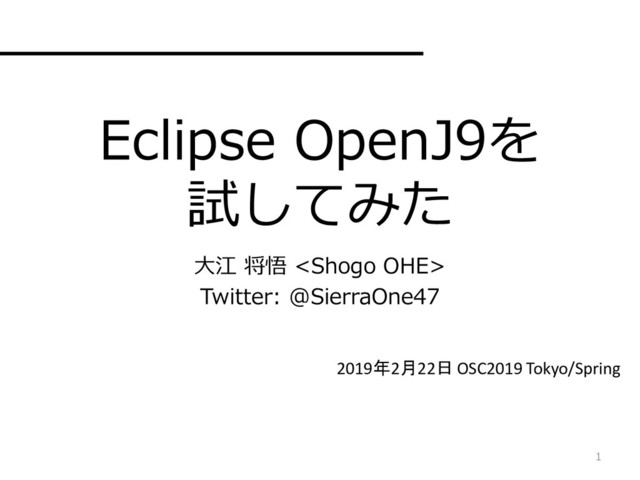 Eclipse OpenJ9を 試してみた 大江 将悟 <Shogo OHE> Twitter: @SierraOne47 1