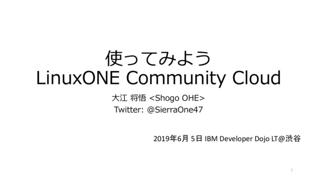 使ってみよう LinuxONE Community Cloud 大江 将悟 <Shogo OHE> Twitter: @SierraOne47
