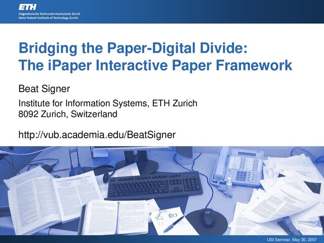 [email protected] Beat Signer Dept. of Computer Science ETH Zurich 8092 Zurich, Switzerland