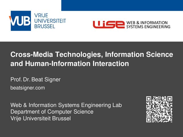 Prof. Dr. Beat Signerbeatsigner.com Prof. Dr. Beat Signer beatsigner.com Web Information Systems Engineering Lab Department of Computer Science Vrije Universiteit Brussel Web & Information Systems Engineering Lab Department of Computer Science Vrije Universiteit Brussel logo.wmf WEB INFORMATION SYSTEMS ENGINEERING WEB & INFORMATION SYSTEMS ENGINEERING