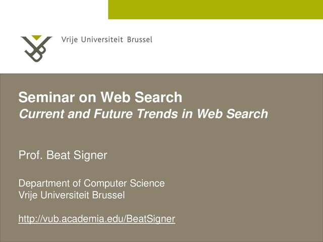 September 12, 2011 Conclusions ▪ Rapidly changing environment with innovative non- textual query interfaces ▪ semantic web, mobile applications, Internet of Things, ... ▪ market for many specialised search engines ▪ Technology brings new challenges for search engines ▪ e.g. increase in hidden data via Rich Internet applications (RIAs) ▪ Growing amount of semantic data ▪ reasoning over linked data ▪ Integration of results from different query engines ▪ e.g. Open Search and other initiatives ▪ One global machine ...