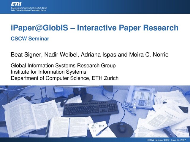 [email protected] Nadir Weibel Dept. of Computer Science ETH Zurich 8092 Zurich, Switzerland