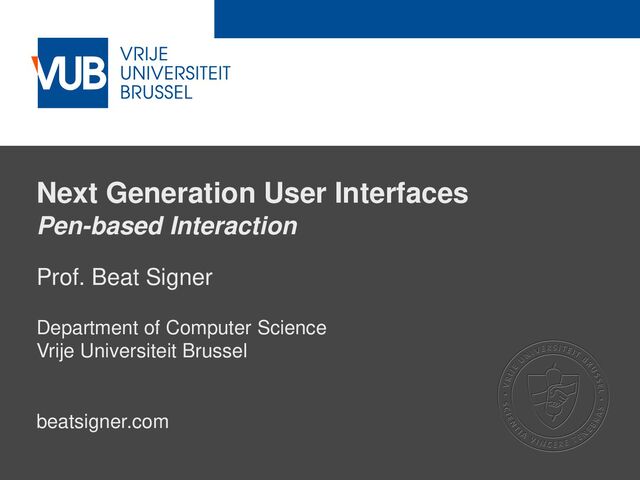 Beat Signer Department of Computer Science Vrije Universiteit Brussel beatsigner.com Department of Computer Science Vrije Universiteit Brussel beatsigner.com