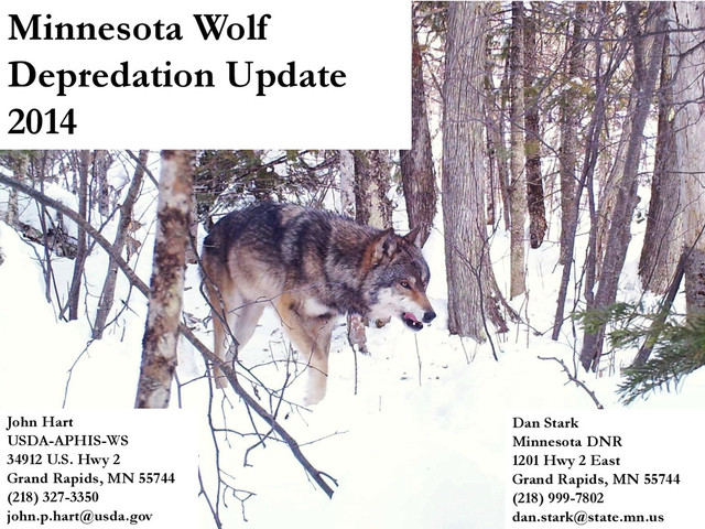 Authors: John Hart, USDA-APHIS-WS and Dan Stark, Minnesota Department of Natural Resources. Presentation given at 2015 Midwest Wolf Stewards Conference at Northland College. April 2015.