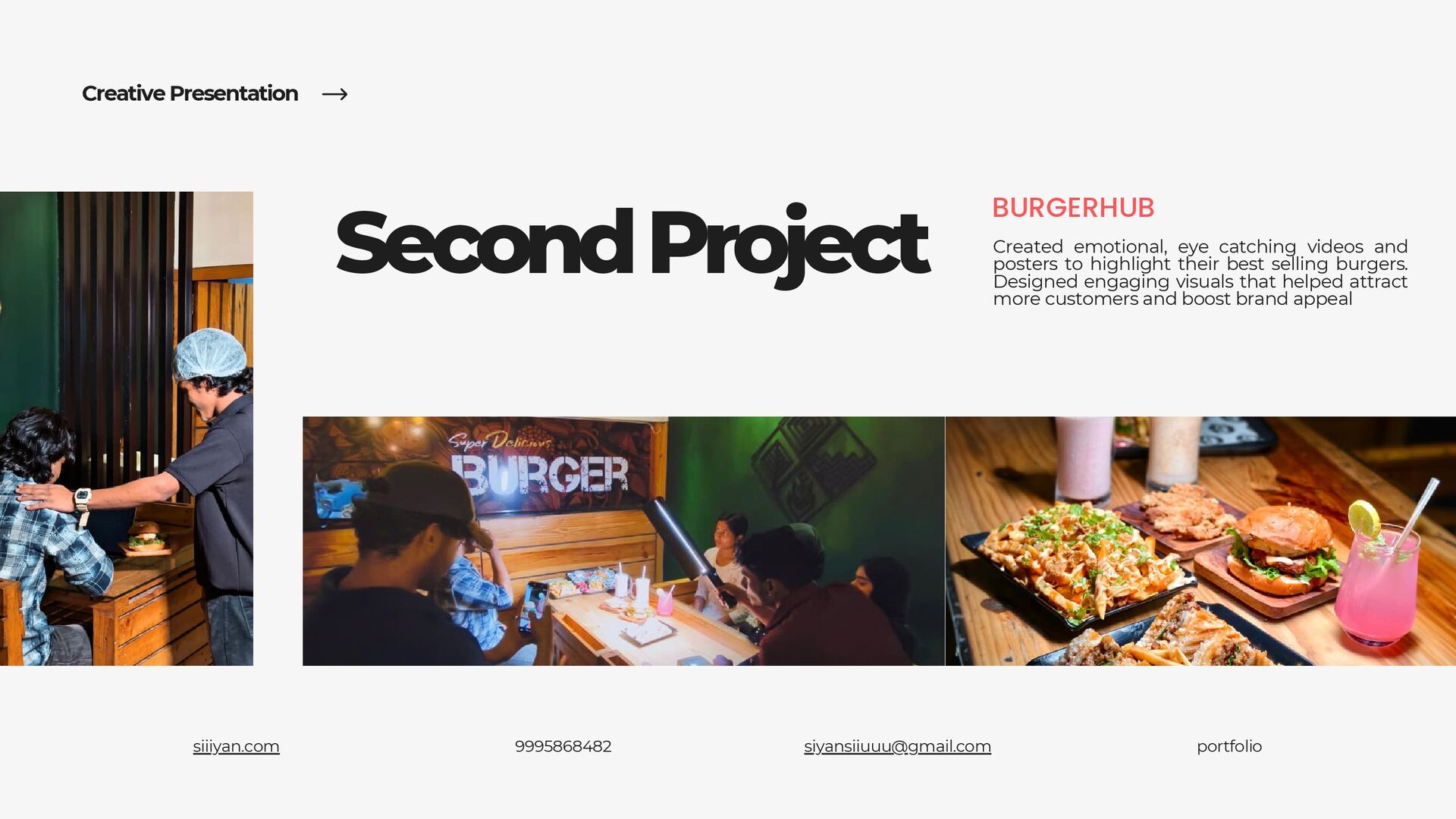highlight their best selling burgers. Designed engaging visuals that helped attract more customers and boost brand appeal Second Project BURGERHUB 9995868482 [email protected] siiiyan.com portfolio
