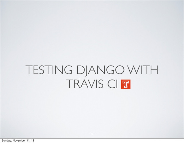 TESTING DJANGO WITH TRAVIS CI 1 Sunday, November 11, 12