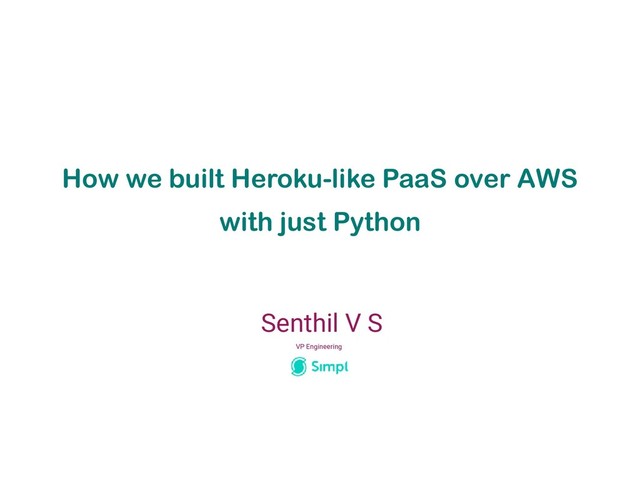 We get high level of customizability with IaaS like AWS and utmost convenience with PaaS like Heroku. We blended the benefits of these two and this talk is about sharing the journey.