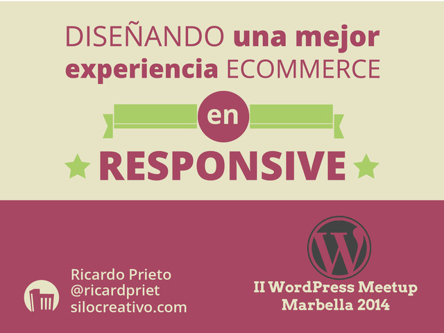 Buenas prácticas a la hora de trabajar con Diseño Web Responsive orientado al comercio electrónico bajo WordPress. Especial atención al Mobile-FIrst, gestión de imágenes fluidas, uso de sliders y correcta ubicación y gestión de Menús.