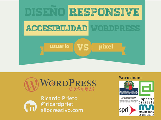 Repaso al uso de diseño web responsive en temas de WordPress, con especial atención al comportamiento y vídeos en pequeñas resoluciones, tipografías en unidades relativas, construcción de diseños a partir de mobile-first y gestión de menús responsive mediante WordPress