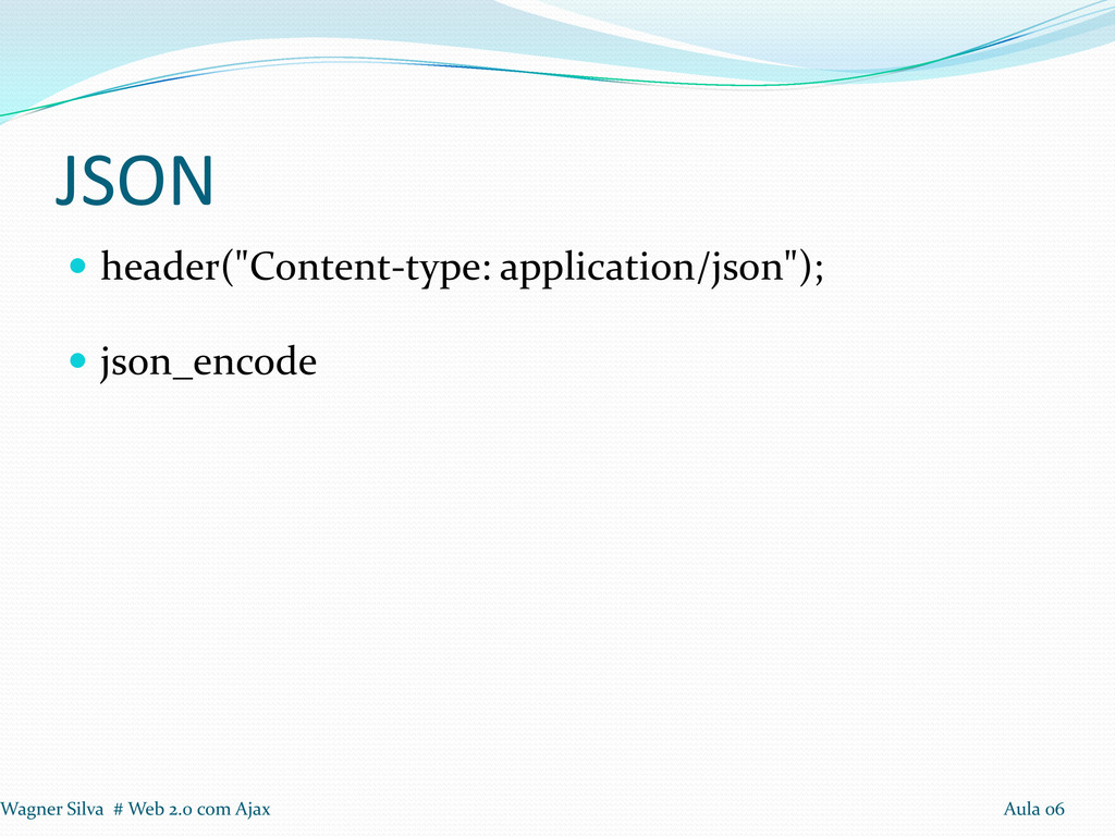 JSON header("Content-type: application/json"); json_encode Wagner Silva # Web