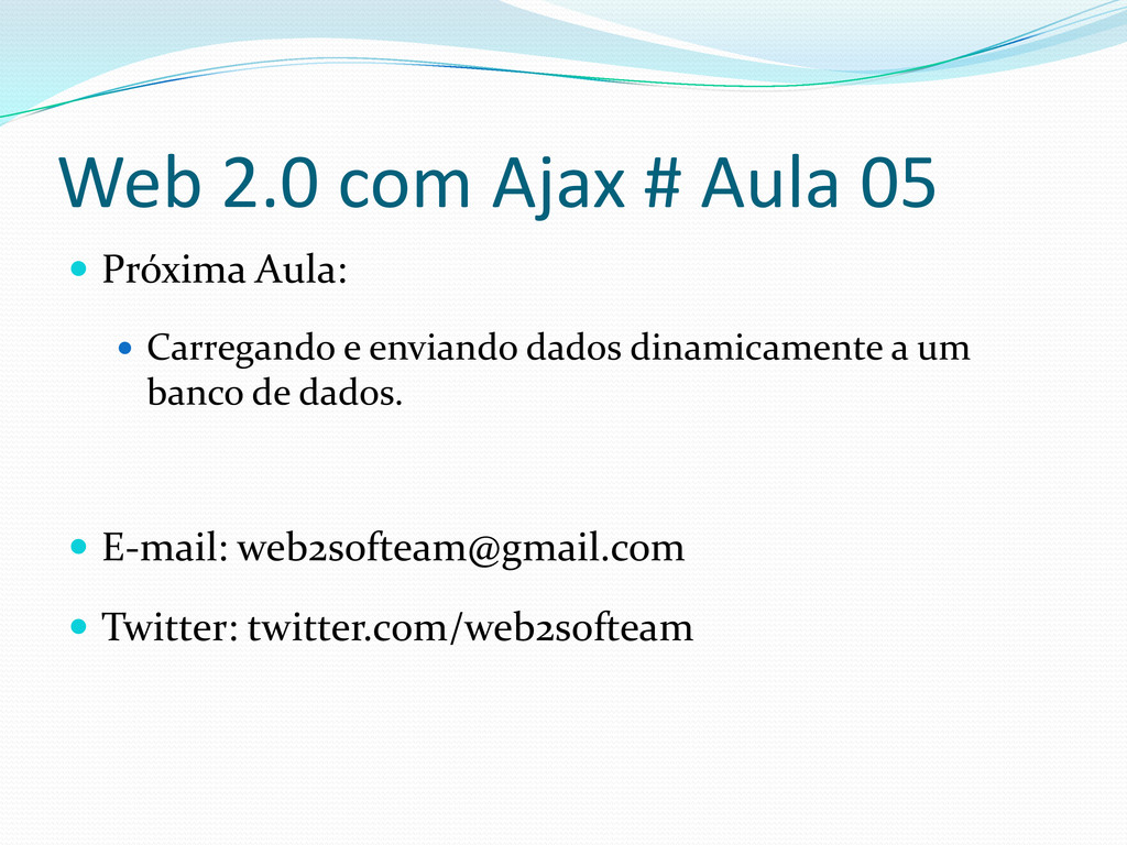 Web 2.0 com Ajax # Aula 05 Próxima Aula: