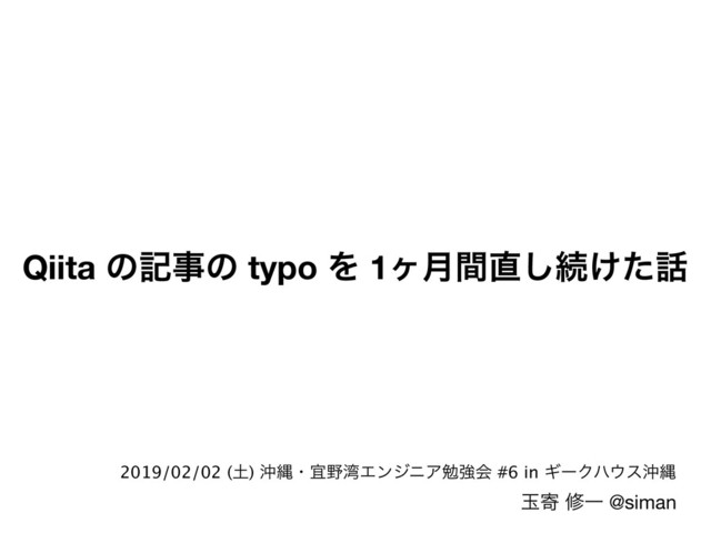 Qiita ͷهࣄͷ typo Λ 1ϲ݄ؒ͠ଓ͚ͨ ۄد मҰ @siman 2019/02/02 ()