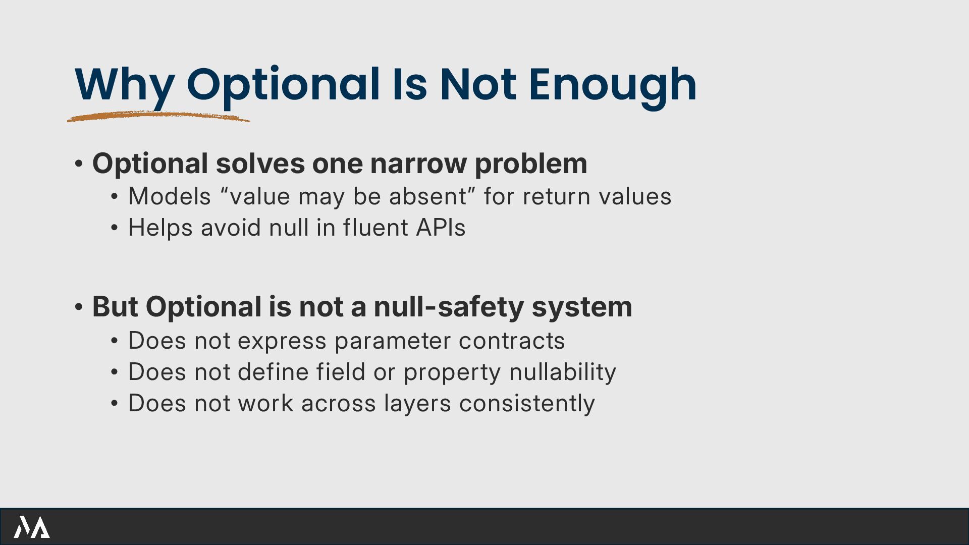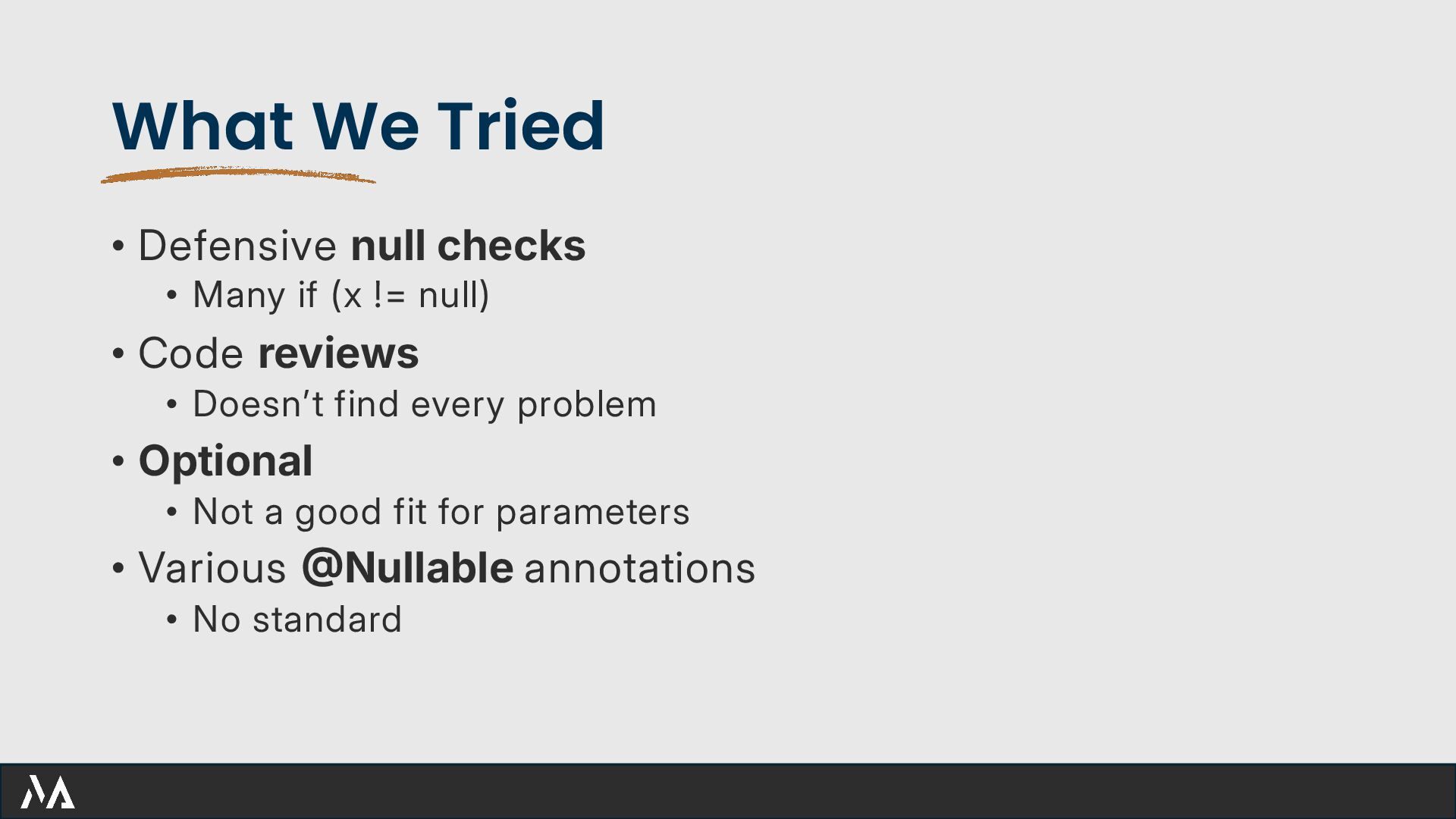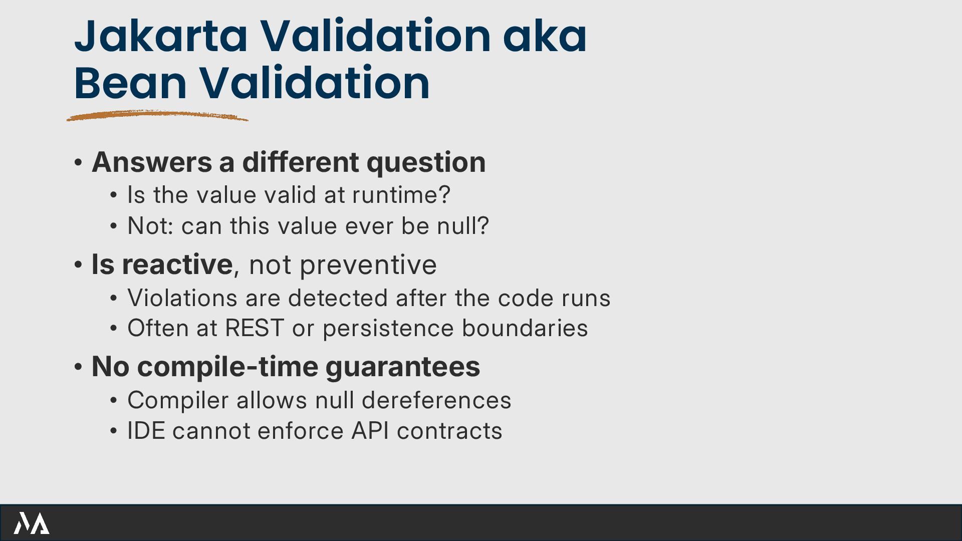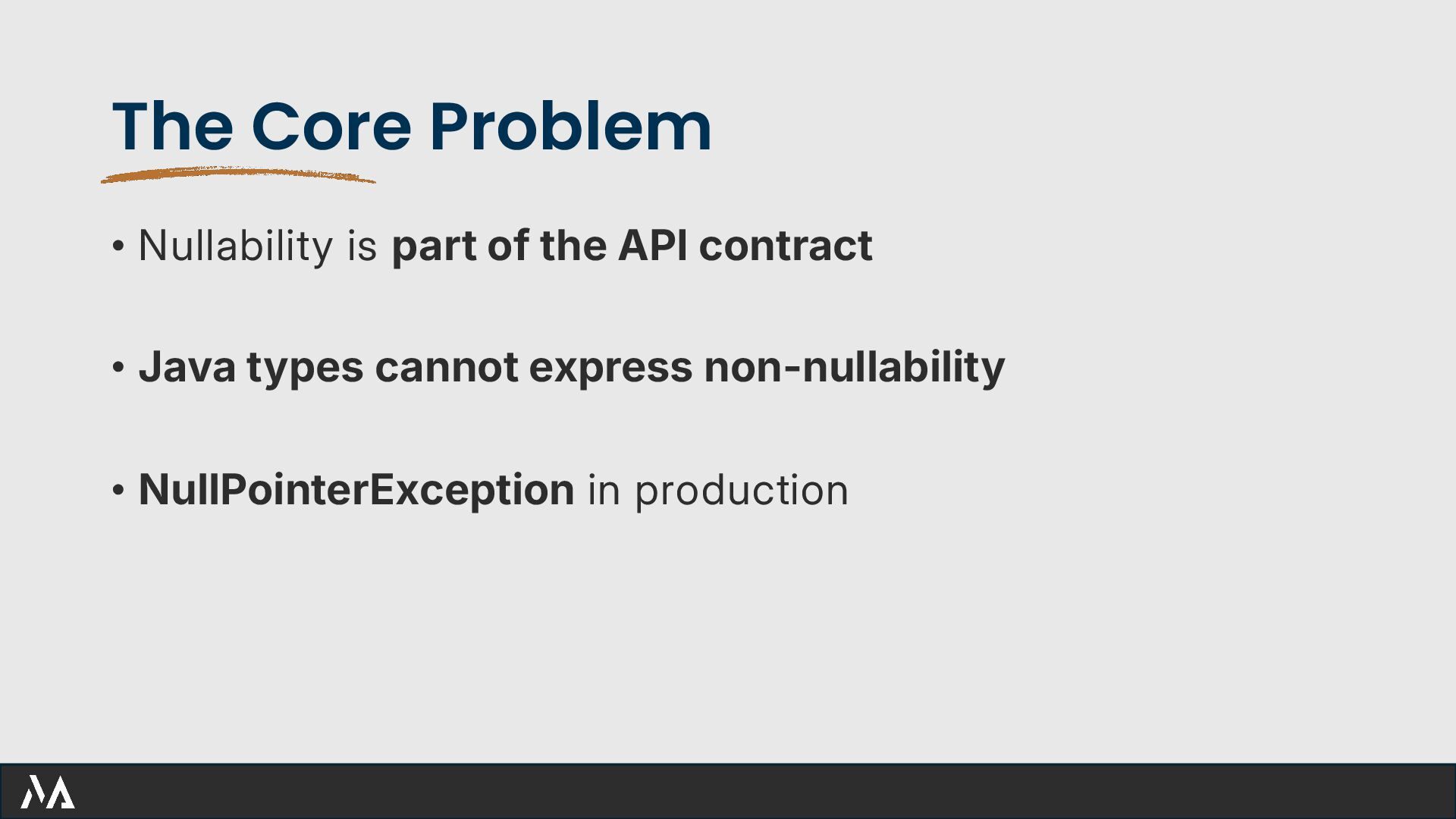 First, we'll look at what JSpecify is and how it differs from other nullability annotations like JetBrains' @Nullable or JSR-305.