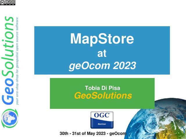 Check it out on Github https://github.com/geosolutions- it/MapStore2/releases/tag/v2023.01.00 https://github.com/geosolutions- it/MapStore2/releases/tag/v2023.01.01 30th - 31st of May 2023 - geOcom