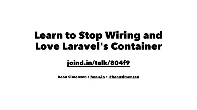 Life doesn't have to be this way! In fact, life isn't this way for anyone who uses an autowiring container like Laravel's. Far from the most publicly marketed component, Illuminate\Container handles a lot of the magic that makes Laravel so much fun to use. Find out how you can use Laravel's container in almost any project! See how autowiring can free your mind from having to manually configure ever little dependency. Learn how you, too, can learn to stop wiring your dependency injection container and love Laravel's container!