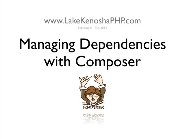 Traditionally, managing third-party code in PHP projects has not been a trivial task. Fortunately, the PHP community now has Composer (https://getcomposer.org/), a top-notch dependency manager. Learn what Composer is and how you can put it to work for fun and profit. You will see how to set up a new project, find packages, as well as how to create and distribute your own packages.