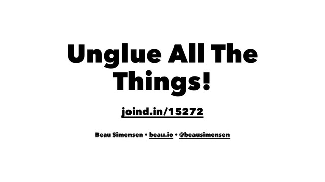 Bundles. Packages. Modules. Plugins. So much code is locked up in framework-specific packages. Integration packages are not bad, but losing the ability to reuse code that has nothing to do with a specific framework's implementation is! Don't let reusable code get locked into framework-specific glue packages! Come see practical strategies for writing framework agnostic code and walk away having a better idea how you, too, can unglue all the things!