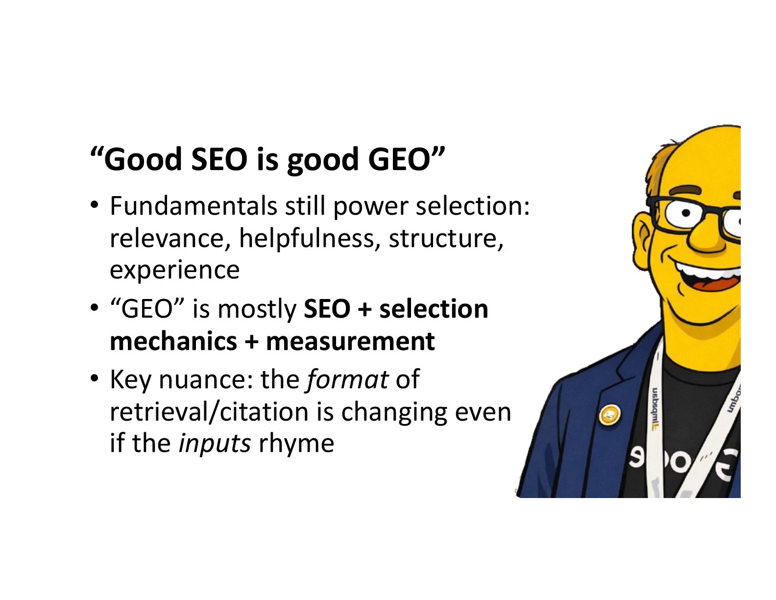 As AI models pull signals from across the web, brands and entities that are not clearly differentiated get blurred, misattributed, or ignored. Grant breaks down how disambiguation really works, why many sites are unintentionally training AI to confuse them with competitors, and how small structural mistakes lead to big visibility losses. The session mixes laugh out loud examples with practical lessons drawn from years of large scale SEO and platform work.
