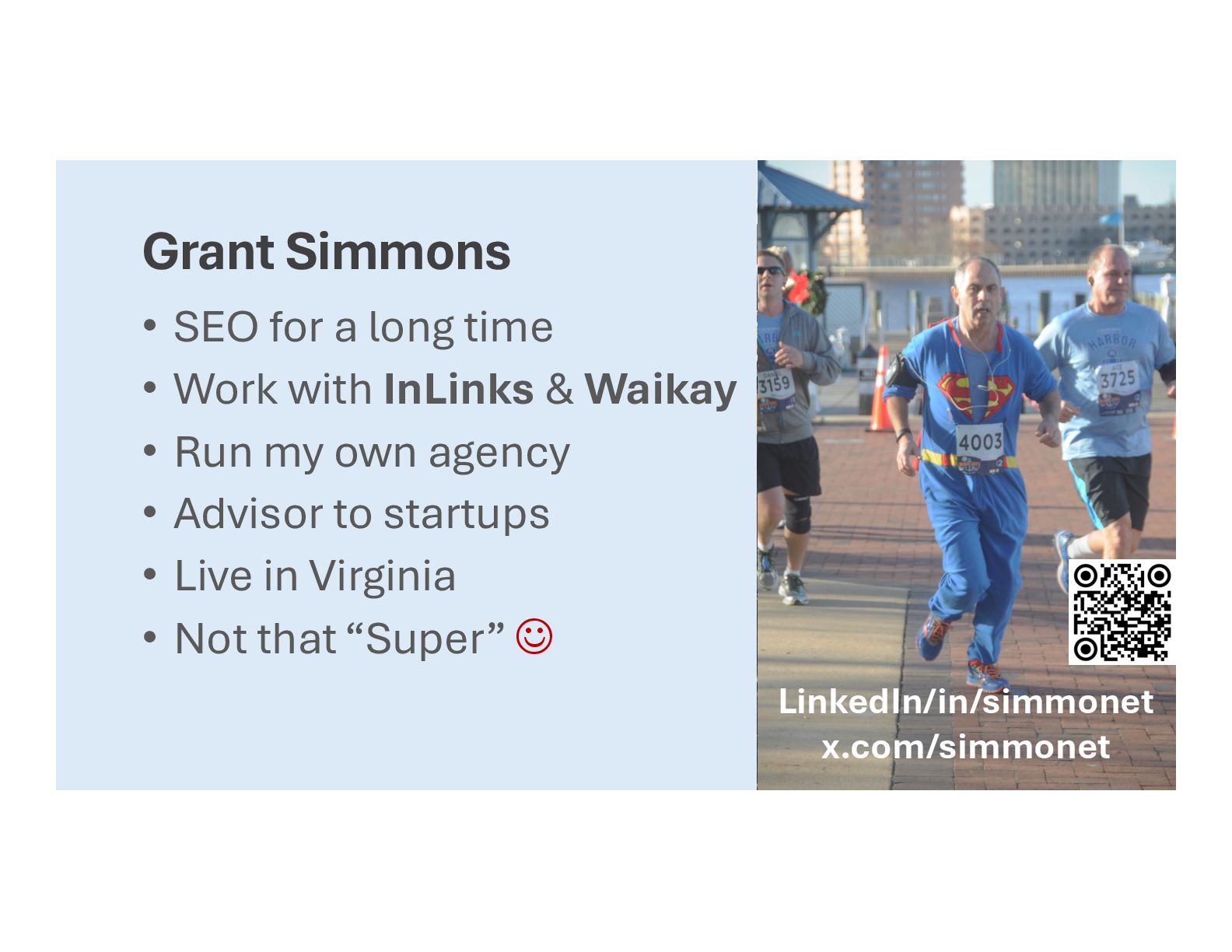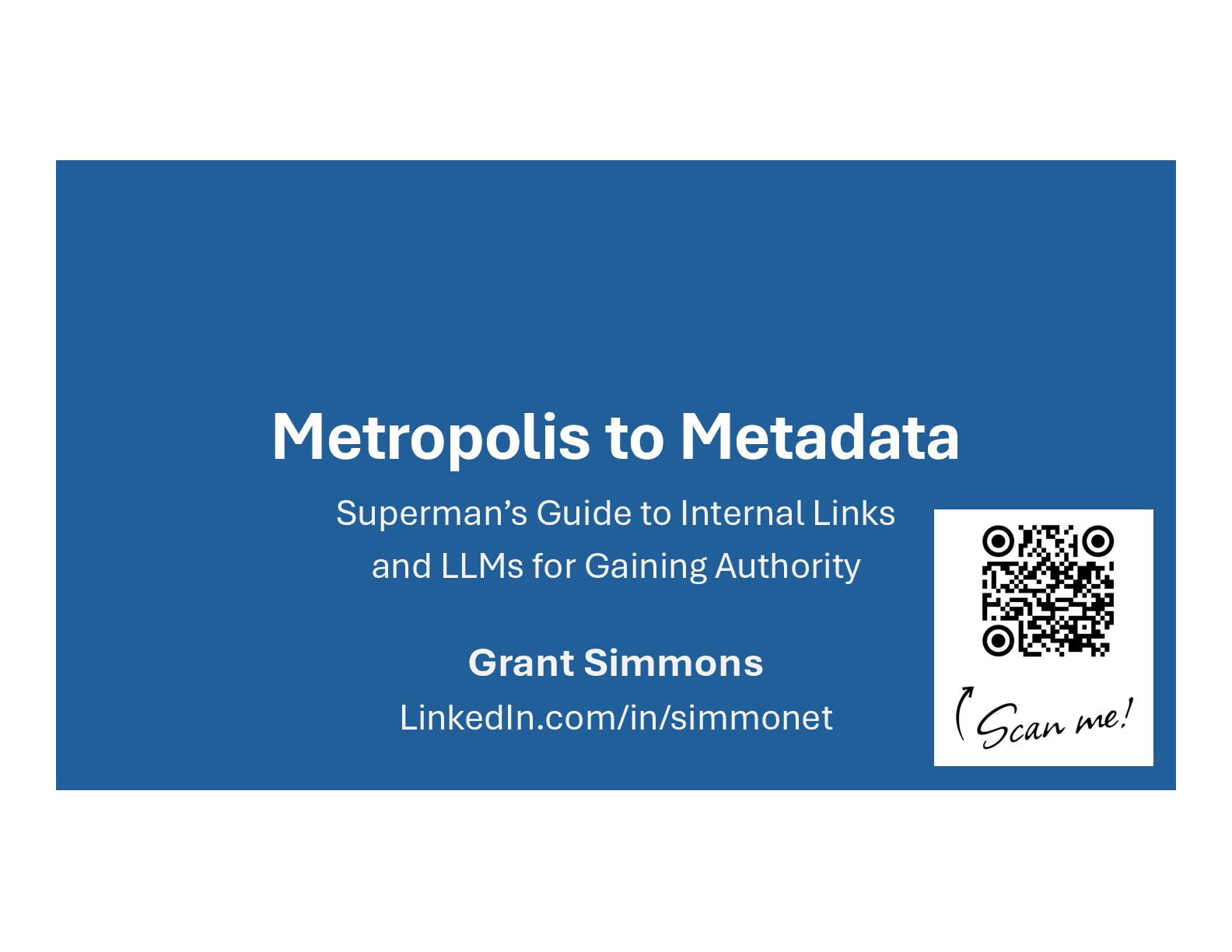to learn • SEO ≠ GEO ≠ AEO • SEO is evolving (still SEO) • We just need to do it “better” • What we should be doing J • Superman Movie anyone? LinkedIn/in/simmonet x.com/simmonet