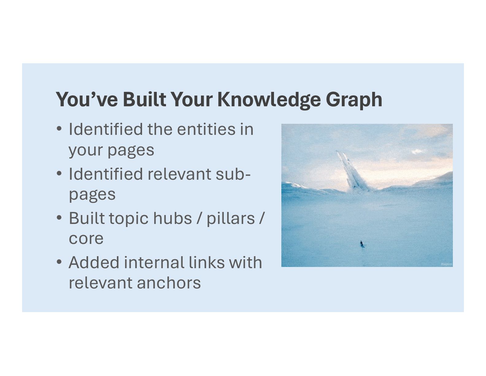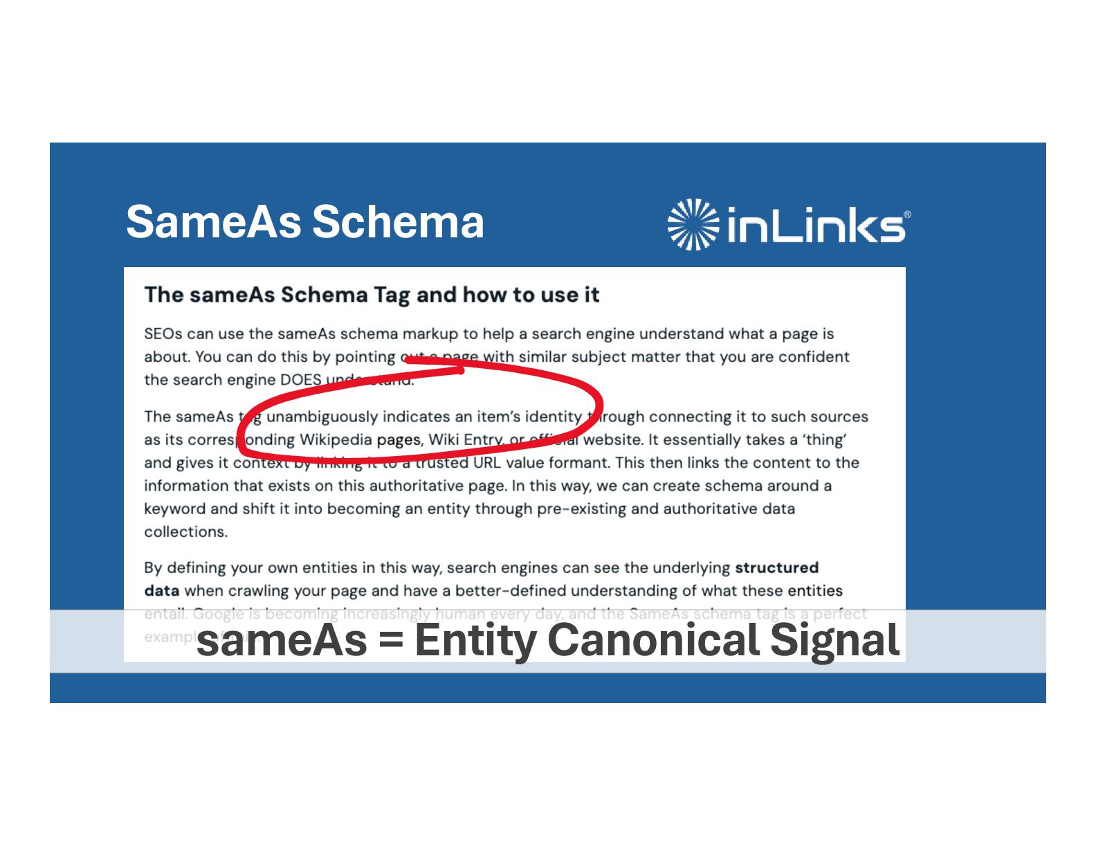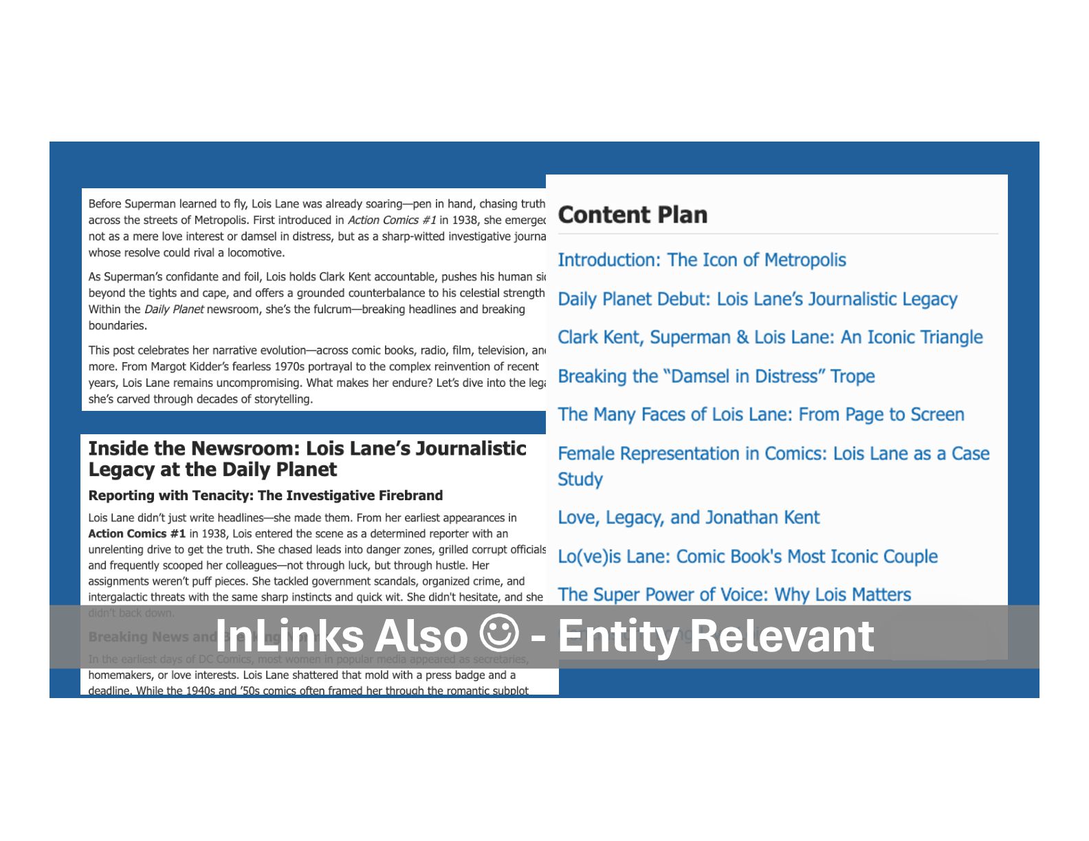 • (It’s important and we’ll cover later) • Internal links provide consensus • Specific links point to specific pages • We can define the entity canonical • Supported by sub-topics entity canonical entity supporting topics