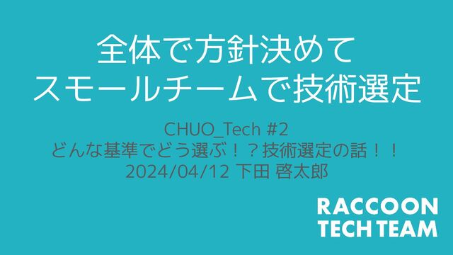 【増枠!】CHUO_Tech #2 どんな基準でどう選ぶ!?技術選定の話!! https://chuo-tech.connpass.com/event/313257/
