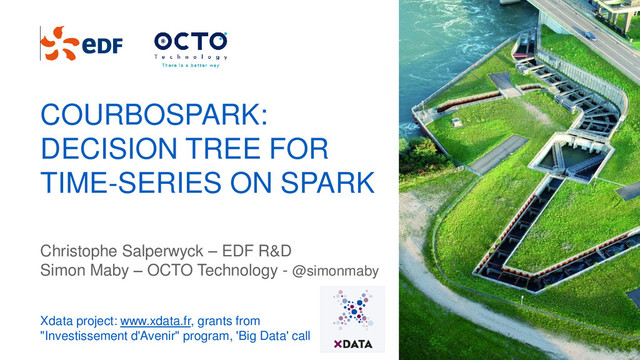 variance, inertia (to compare time-series) • Data structure: LabelPoint, TimeSeries • Finding split point for nominal features For data visualization of the tree: • Quantile on the nodes and leaves • Lost of inertia • Number of curves per nodes, leaves FROM MLLIB TO COURBOSPARK